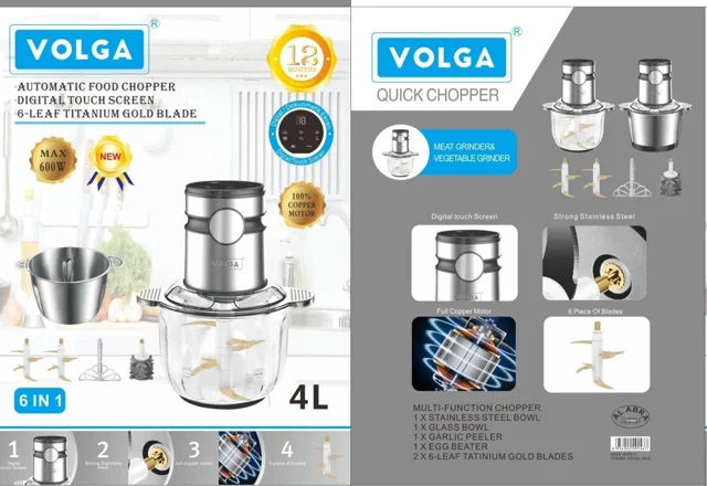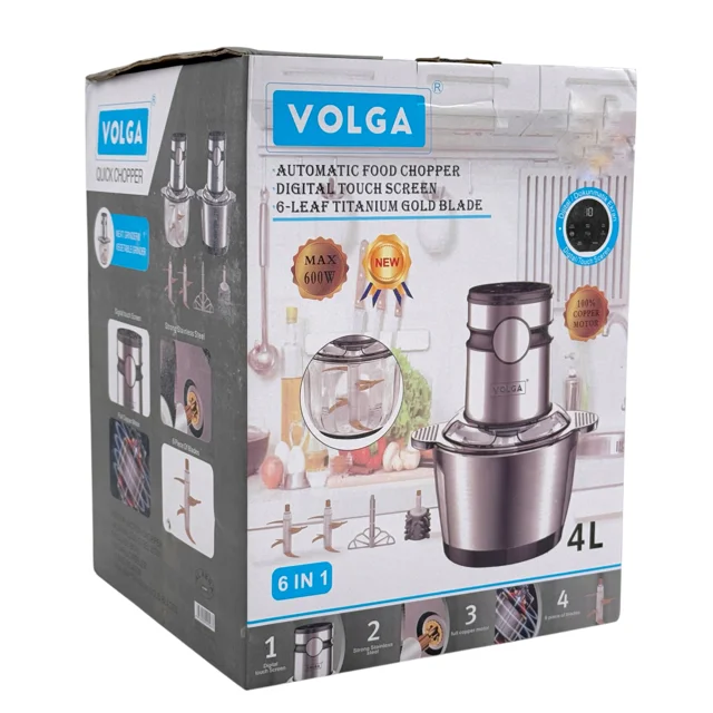 خردکن 4 لیتری ولگا با ظرفیت مناسب 4 لیتر، طراحی ارگونومیک و تیغههای تیز استیل، امکان خرد کردن سریع و یکنواخت انواع سبزیجات، میوهها و مواد غذایی را فراهم میکند. دستگاهی کاربردی و با کیفیت برای استفاده در خانه و آشپزخانههای کوچک.
